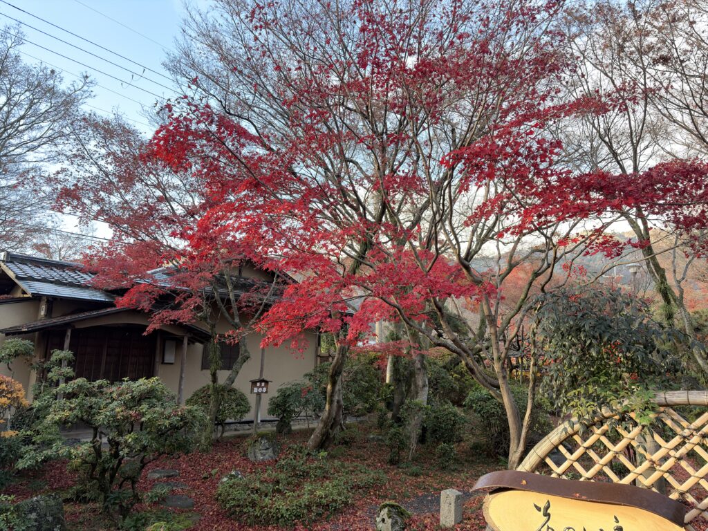 やはり夜は京都のグルメを楽しみたいので繁華街がいいのですが、お宿の真っ赤に燃え上がった紅葉を見ると迷ってしまいますね?