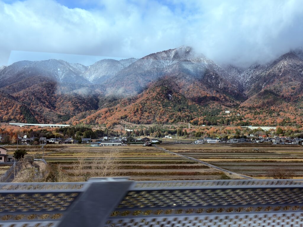 冠雪した比良山地の二段紅葉を眺めながら、はしたての鯛弁当は最高のお昼ご飯となりました。