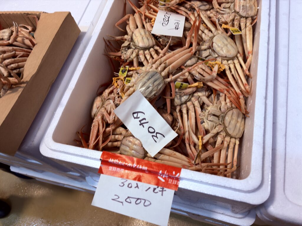 やはりもうお店には魚がほとんどありませんが、越前ガニのオスとメスをやっとこさ買い求めました。