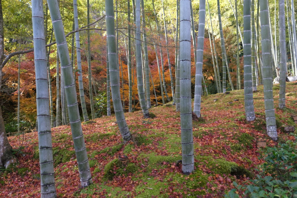 そして清々しい竹林は、散り紅葉を纏ってとても綺麗です。